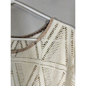 Oddy Knit Patchwork Top M Cream Handkerchief Tunic Boho Western Classic Chic 80s