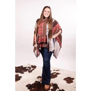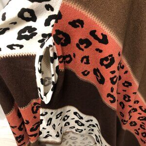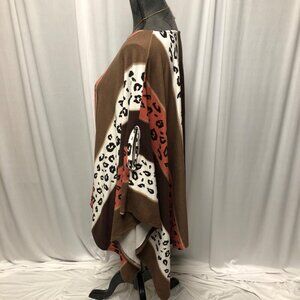 Oddy Leopard Block Brown Salmon Poncho One Size Animal Print Pullover Sweater
