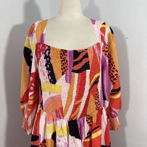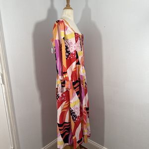 Oddy Midi Dress Womens 3XL Not What It Seems Smocked Curvy Vacation Beach
