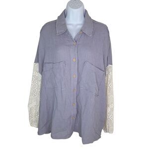 New with tags. Women's Oddy Nwt Miami Lantern Sleeve Button Up Over Sized Shirt Blouse Size Medium.