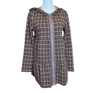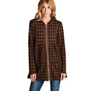 Oddy Plaid Ruffle Zip Up Jacket Chestnut Brown / Gold Windowpane S. Boho chic, so fun! Excellent nearly new condition. See photos for all details and measurements. Check out my closet for more items to add for only one shipping fee.