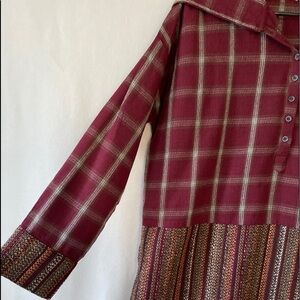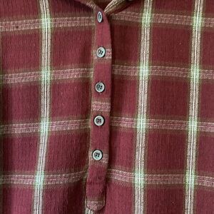 New With Out Tag Oddy Size M Hooded Button Plaid long Sleeve Burgundy Pullover.