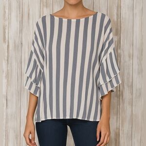 #RuffleSleeves #StripedStyle #ClassicChic #OddyTop #PoshmarkStyle
