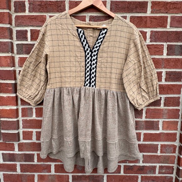 Oddy Tunic Top Womens Small Brown Textured Neutral Relaxed Fit Boho Peasant