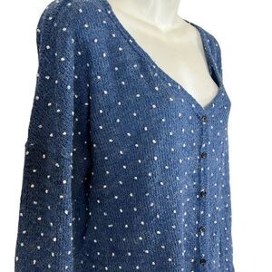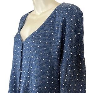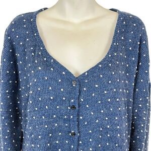 Oddy Womens Blue Swiss Raised Dot Womens Cardigan Sweater Plaid Ruffle V-Neck M