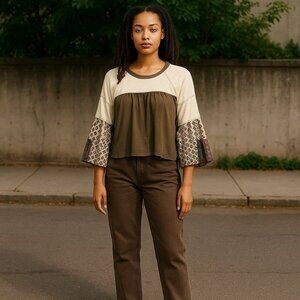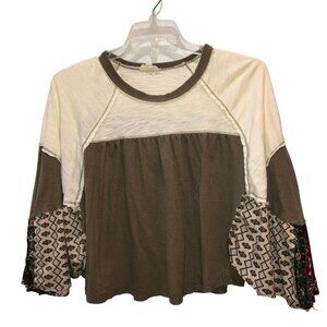 Oddy Womens Medium Large Boho Batwing Sleeves Linen Blend Crop Top Shirt M L