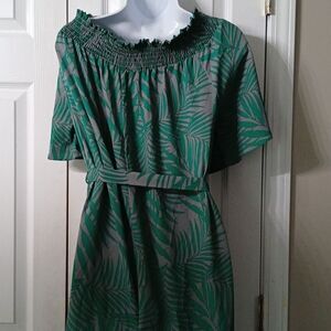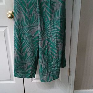 Oddy green gray off the shoulder fern printed wide leg belted jumpsuit Sz 2XL