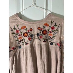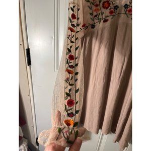 Oddy woman’s beige lined long sleeved embroidered dress size small.