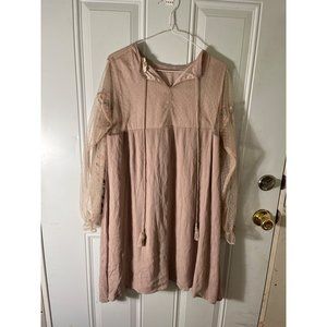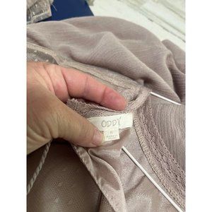 Oddy woman’s beige lined long sleeved embroidered dress size small. Sleeves are all lace with embroidered flowers. Lace around neck area as well with embroidered flowers. Back has hook and tie cord. Pit to put measures approximately 19”. Shoulder to hem measures approximately 32”. Goid pre-owned condition.