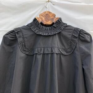 Odeeh Black Blouse High Victorian Neck Ruffle Boxy Fit Cotton 36