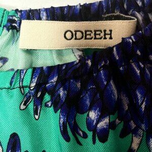 Odeeh Silk Green Flora Blouse Womens Size XS