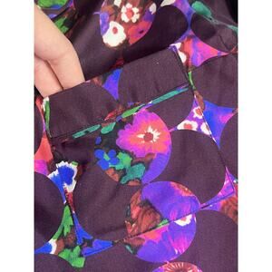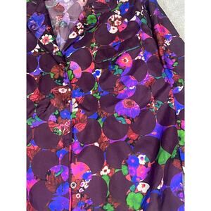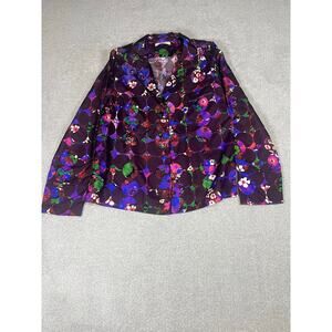Odeeh Women's Floral Silk Shirt Plum Button-Up Top Vibrant Multicolor Size XS