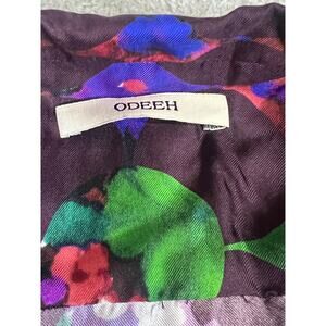 For sale is a stunning Odeeh women's silk blouse in size XS (2), featuring a vibrant multicolor floral pattern. Measuring 24" in length and 18" pit to pit, this elegant button-up shirt is in excellent used condition. Made from 100% silk, it's perfect for both casual and chic occasions. Ships same day or next day with reasonable offers always welcome!