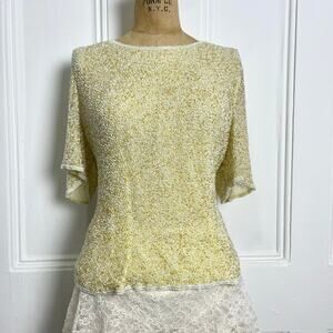 Odeon vintage glamorous short sleeve yellow beaded top with zipper in the back, beautiful silk shell top great for festive/holiday/special occassions.