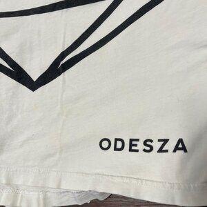 White and black simple Odesza icosahedron logo shirt. This is one of Odesza's first tour t-shirts and is probably considered a vintage item in the EDM world. The size isn't on the tag but is assumed a unisex L (they did not have many women's / men's specific items around this shirt's release). Shirt is from Next Level.