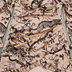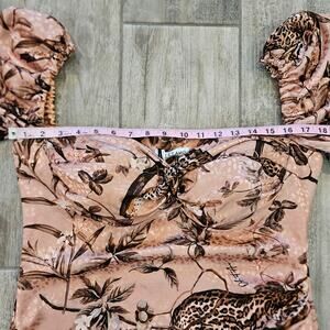 Odi Et Amo Leopard Mini Dress Size 46 US 10 Sweetheart Neck Puff Sleeve Jacquard