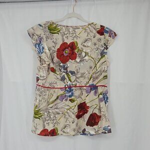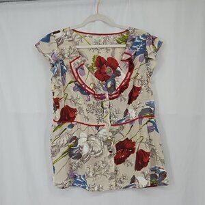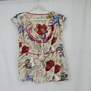 Odille Anthro. Button Up Blouse Womens Blue Purple Red Silk Blend Ruffles