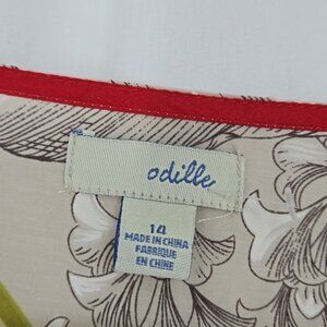 Odille Anthro Button Up Blouse Womens Blue Purple Red Silk Blend Ruffles Size 14