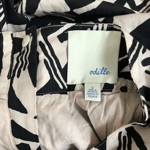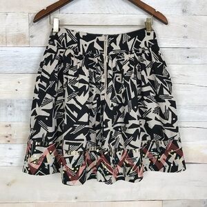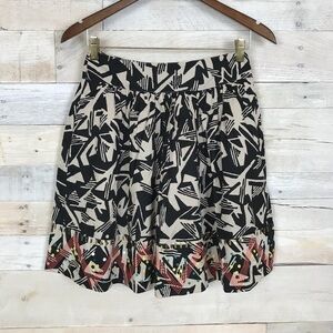 Odille Anthropologie Black Tan Print Sequin Pleated Skirt