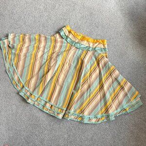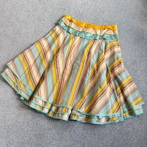 Odille Anthropologie Circle Swing Skirt Stripes Layered Cotton Silk US 2