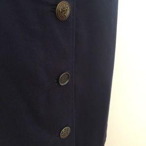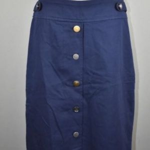 In excellent like new condition! Size 6. The color is navy, sorry some of the pictures are darker than item color. Notice the different details on all the buttons. Odille is a brand found at Anthropologie. Mixed military buttons, knee-length, high waisted with a side zipper. Super classy! Shell: 100% cotton Lining: 100% polyester