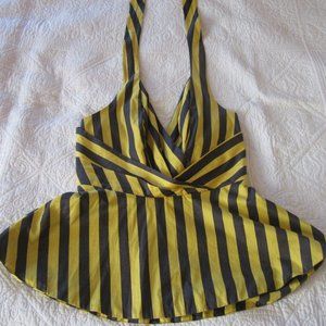 Odille Top 8 Melosa Halter Yellow/Brown Stripe Peplum. This top is in a gently worn condition with no rips or stains. Side zipper. The ties do have some wrinkles.