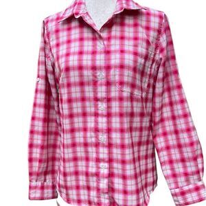 Odlo Pink Plaid Button Down Rugged Top Blouse Shirt Designed for Layering Size S