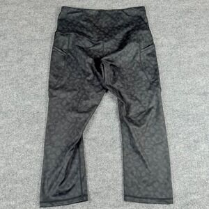 Ododos Capri Leggings Large Black Leopard Print Activewear Pockets Athleisure