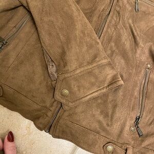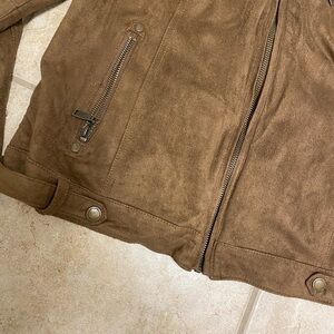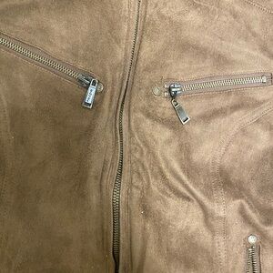Odyn Brown/Cognac Faux Suede Motorcycle Style Jacket - Womens Size Large