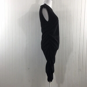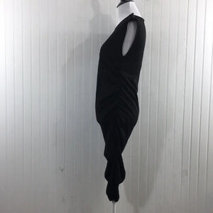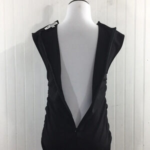 Of Mercer Black Bodycon Midi Dress Womens 2 Sleeveless Snap Shoulder Shirred