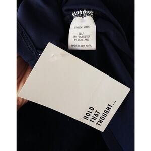 Of Mercer Women's Bodycon Midi Dress Snap Shoulder Sleeveless Wiggle Shirred Sides Navy Blue NWT