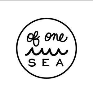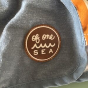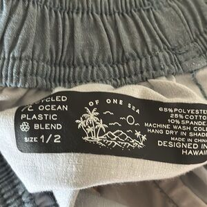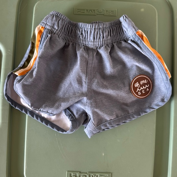 Of One Sea Swim Shorts size 1/2 Blue with retro side stripes.