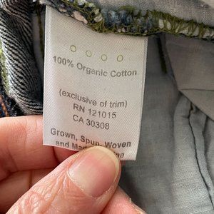 Of The Earth Jeans Wide Leg Denim Boho Organic Cotton Utility Pants Womens Sz 36