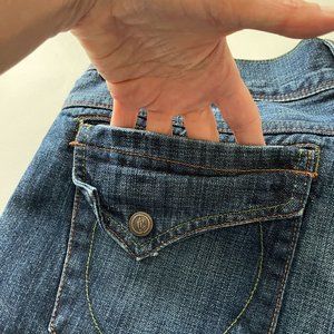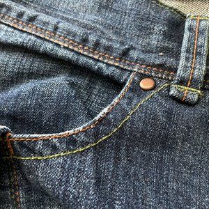 Very good pre-owned condition. Minor general wear. Wear to bottom hems. Wear on back pockets and front pocket.
