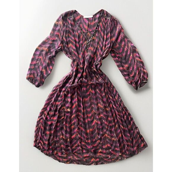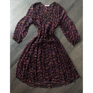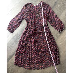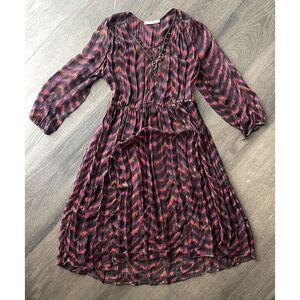 Of Two Minds 100% Silk Long Sleeve Sheer Maxi Dress Multicolor Large