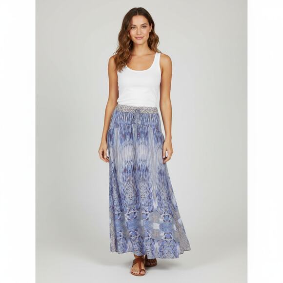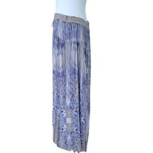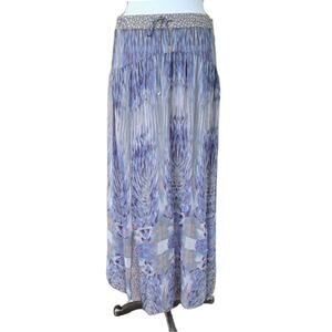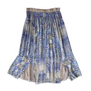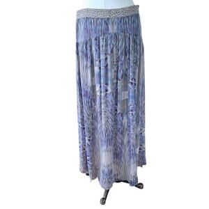 Of Two Minds Silk Flowy Boho Maxi Skirt Medium Blue Brown