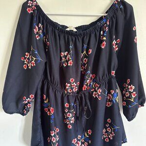 Of the shoulder dark floral stretch waist blouse size medium girly flowy