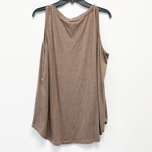 Ofeefan Women's V Neck Curve Hem Sleeveless Tank Top Heather Brown Size XL