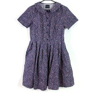Off On Short Sleeve Cotton Floral Button Front Peter Pan Collar Mini Dress Small