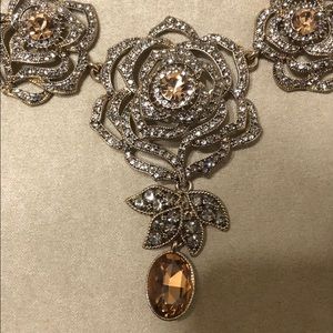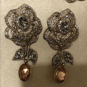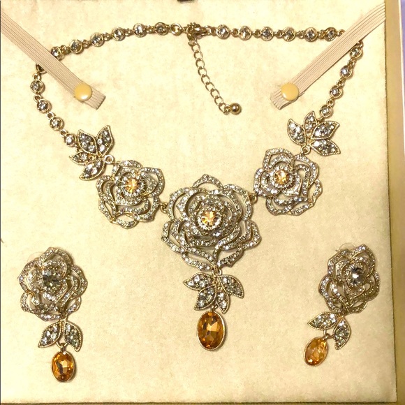 Off Park Necklace and pierced Earrings. Brown and white crystals. Antiqued Gold Tone.