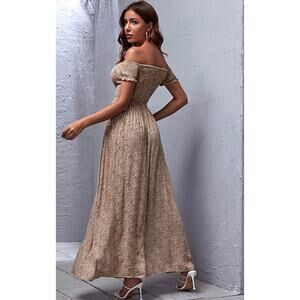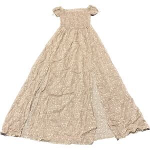 Features: Ditsy floral, plus size, off shoulder, short sleeve, high waist, split, long a line dress