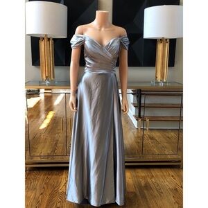 Description: Off The Shoulder Bridesmaid or Prom Dress with pockets and Slit on the side in a Satin material for Formal Evening Dress. Also, has a built in bra. Beautiful ruching to better conceal tummy issues. This dress was made to order. This Satin A line dress features sweetheart, off the shoulder, pleated bodice, a figure-flattering princess waistline and a full, soft skirt complete the look. You will receive many compliments on this dress. The back has to be laced up as it is in a corset style so the dress can fit a larger body frame.