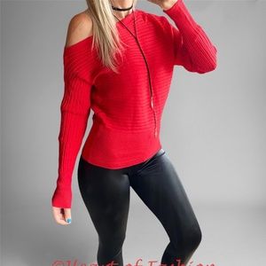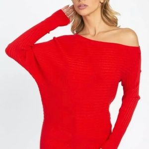 Off Shoulder Dolman Soft Slouchy Sweater Top Red