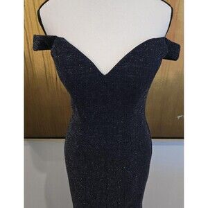 Off Shoulder Evening Gown Dress Womens 6 Navy Glitter Sweetheart Formal Slit