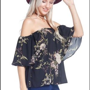 Off Shoulder Floral Top - Black