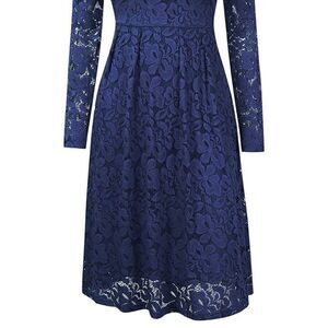 Off Shoulder Lace Retro Pinup Vintage 1950s Long Sleeves Swing Navy Dress L NWT