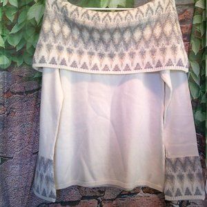 Off Shoulder Long Sleeve Aztec Print Sweater
