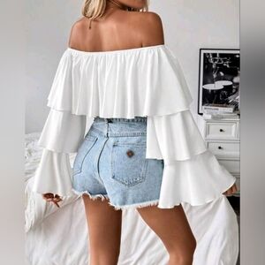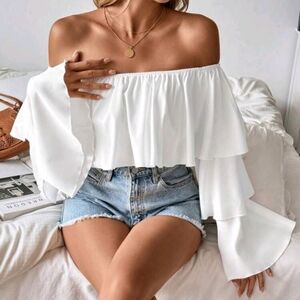 Off Shoulder Off Ruffled Women's Long Sleeve Shirt With Square Neckline, Long Sl