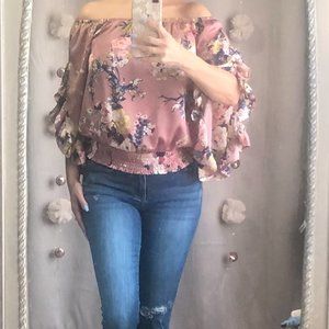 Off Shoulder Open Ruffle Sleeve Floral Top