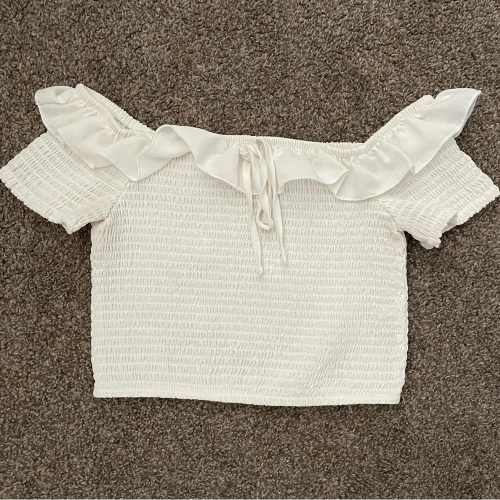 White off shoulder rubbed crop in a size M